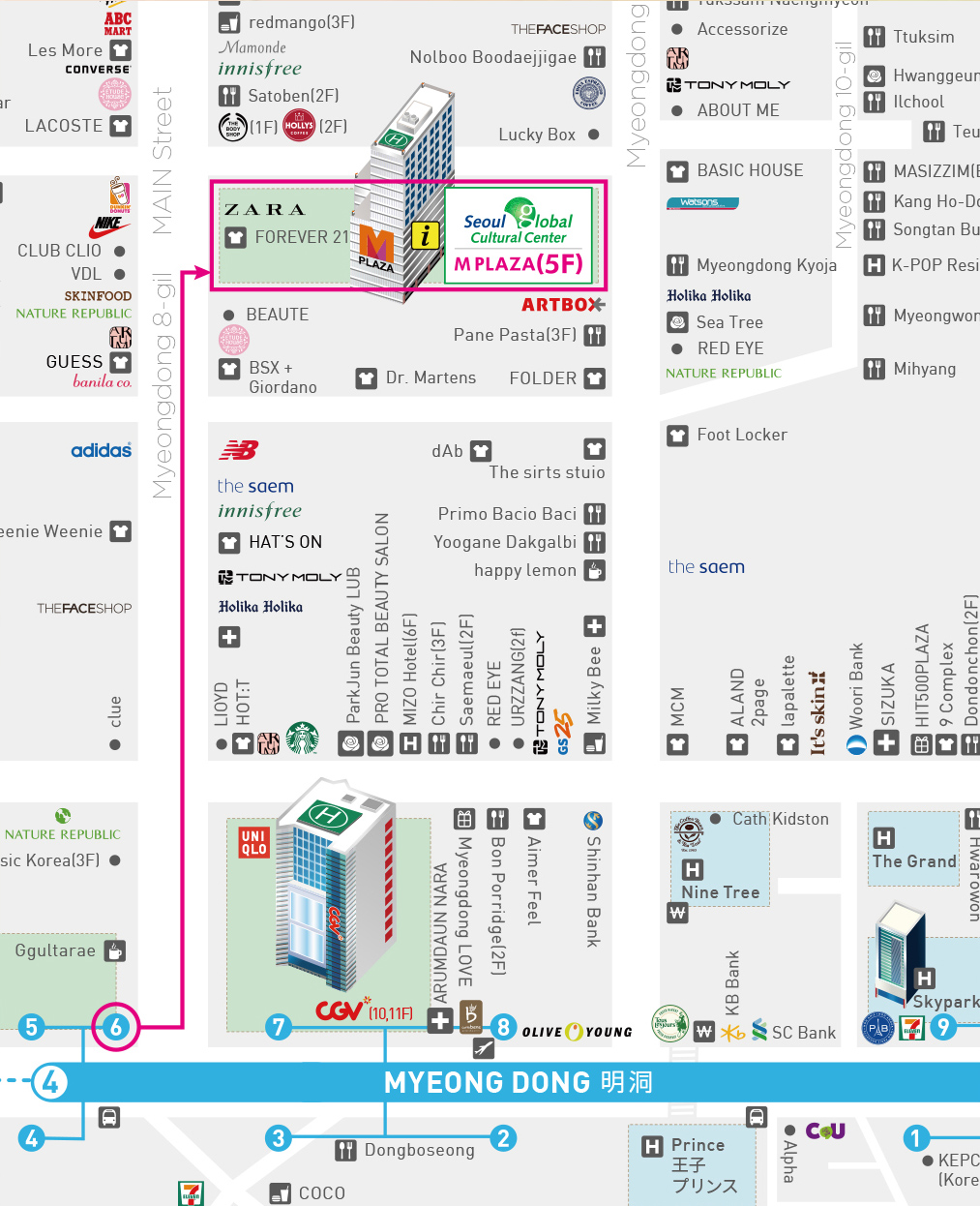 Myeong-dong Station Exit 6 (3min Walk)